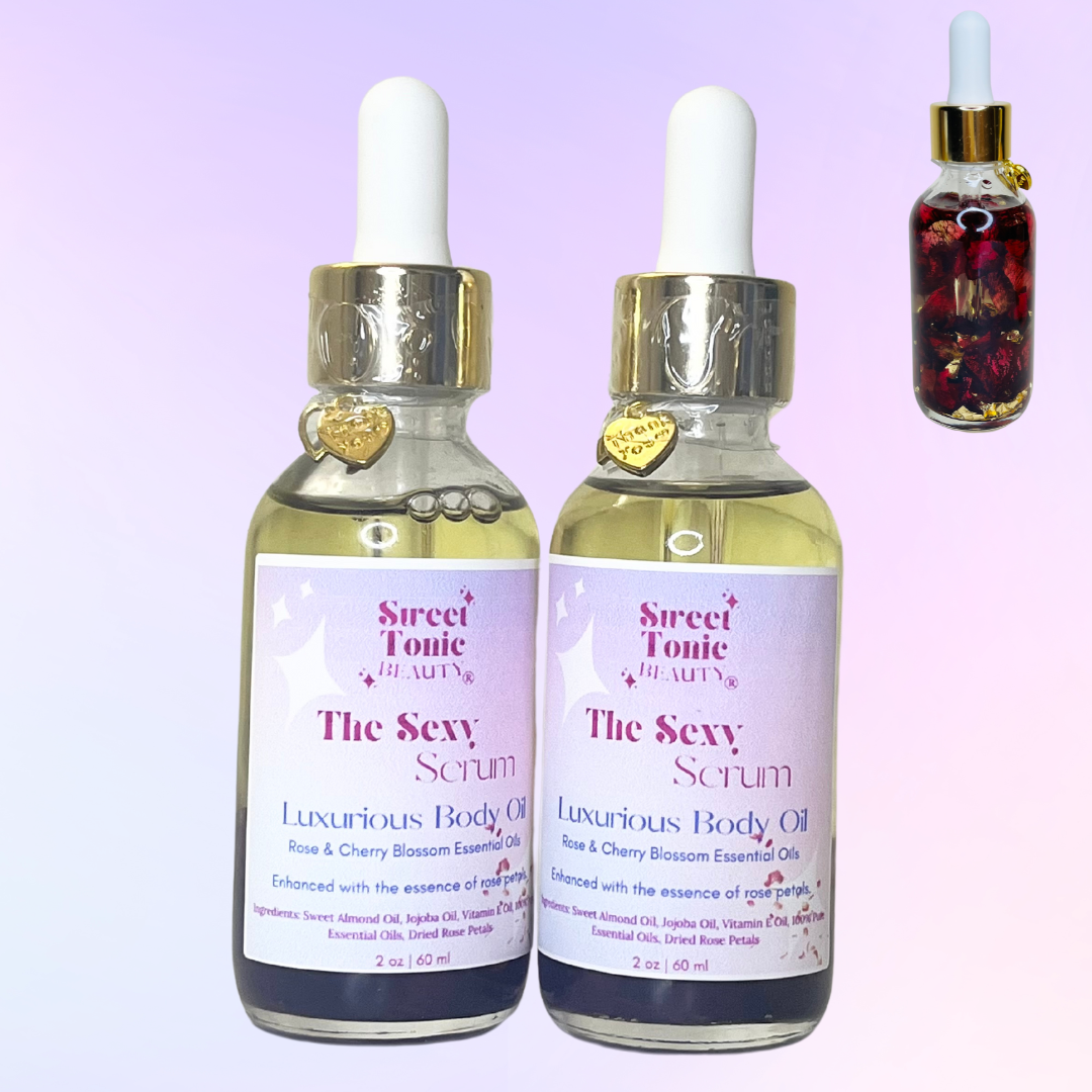 Our popular body oil is back in stock with a makeover! Now called The Sexy Serum, it comes in 2 seductive varieties & scents, Rose Gold & Shimmering Bronze.